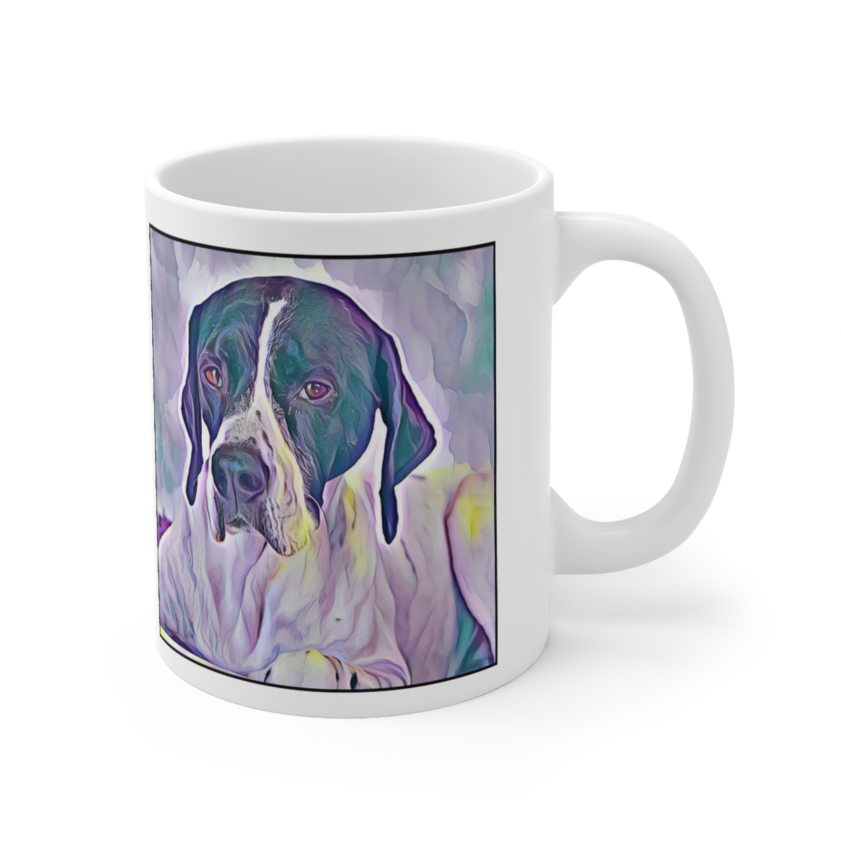 Keep cozy and warm with a nice cuppa, featuring the beloved Pointer dog breed stylized in our Coloromo Lavender Ice art on a ceramic mug. Lead and BPA-free, these durable mugs are also microwave & dishwasher-safe. Made of white, resilient ceramic in an 11-ounce size, this is the perfect gift for coffee, tea, and hot chocolate lovers.