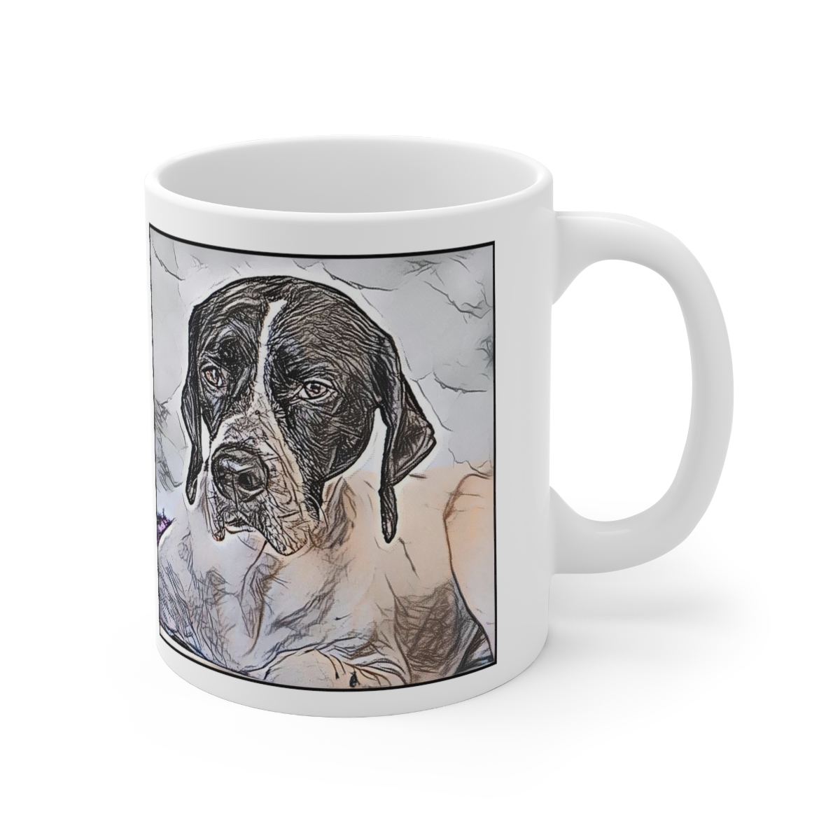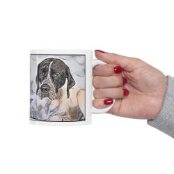 Keep cozy and warm with a nice cuppa, featuring the beloved Pointer dog breed stylized in our Coloromo Penciled In art on a ceramic mug. Lead and BPA-free, these durable mugs are also microwave & dishwasher-safe. Made of white, resilient ceramic in an 11-ounce size, this is the perfect gift for coffee, tea, and hot chocolate lovers.