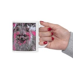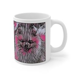 Keep cozy and warm with a nice cuppa, featuring the beloved Pomeranian dog breed stylized in our Coloromo Comic Pink art on a ceramic mug. Lead and BPA-free, these durable mugs are also microwave & dishwasher-safe. Made of white, resilient ceramic in an 11-ounce size, this is the perfect gift for coffee, tea, and hot chocolate lovers.