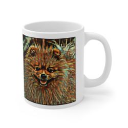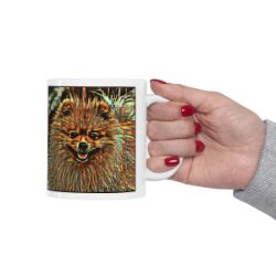 Keep cozy and warm with a nice cuppa, featuring the beloved Pomeranian dog breed stylized in our Coloromo Cool Cubist art on a ceramic mug. Lead and BPA-free, these durable mugs are also microwave & dishwasher-safe. Made of white, resilient ceramic in an 11-ounce size, this is the perfect gift for coffee, tea, and hot chocolate lovers.