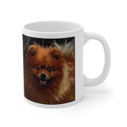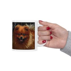 Keep cozy and warm with a nice cuppa, featuring the beloved Pomeranian dog breed stylized in our Coloromo Rock Candy art on a ceramic mug. Lead and BPA-free, these durable mugs are also microwave & dishwasher-safe. Made of white, resilient ceramic in an 11-ounce size, this is the perfect gift for coffee, tea, and hot chocolate lovers.