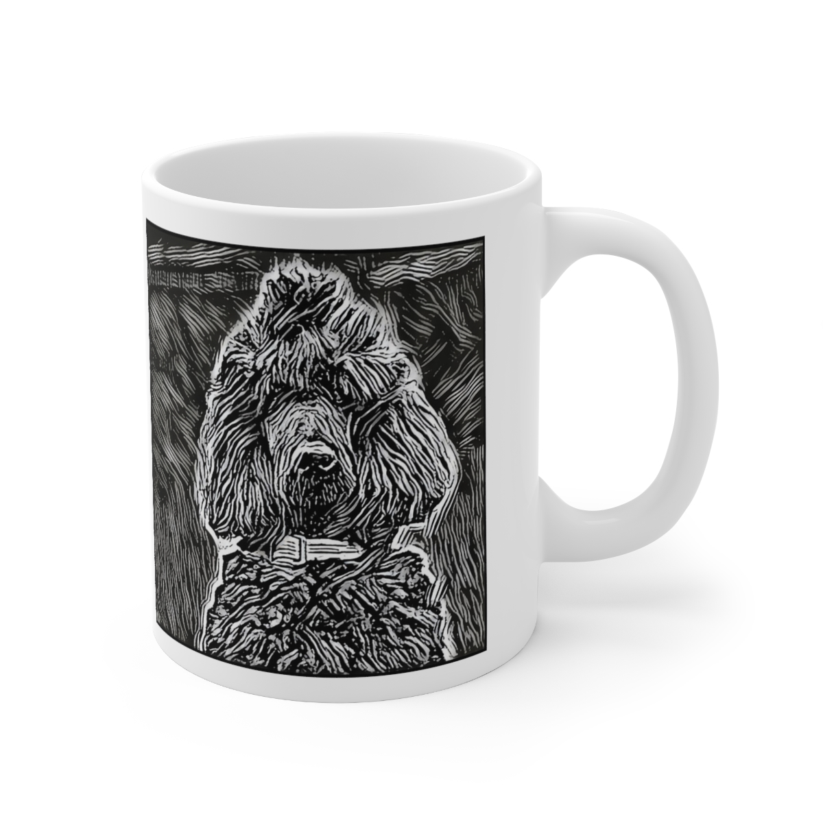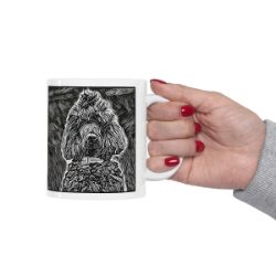 Keep cozy and warm with a nice cuppa, featuring the beloved Poodle Standard dog breed stylized in our Coloromo Licorice Lines art on a ceramic mug. Lead and BPA-free, these durable mugs are also microwave & dishwasher-safe. Made of white, resilient ceramic in an 11-ounce size, this is the perfect gift for coffee, tea, and hot chocolate lovers.