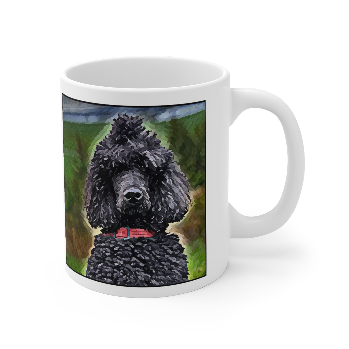 Keep cozy and warm with a nice cuppa, featuring the beloved Poodle Standard dog breed stylized in our Coloromo Lord Lil Bit art on a ceramic mug. Lead and BPA-free, these durable mugs are also microwave & dishwasher-safe. Made of white, resilient ceramic in an 11-ounce size, this is the perfect gift for coffee, tea, and hot chocolate lovers.