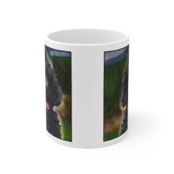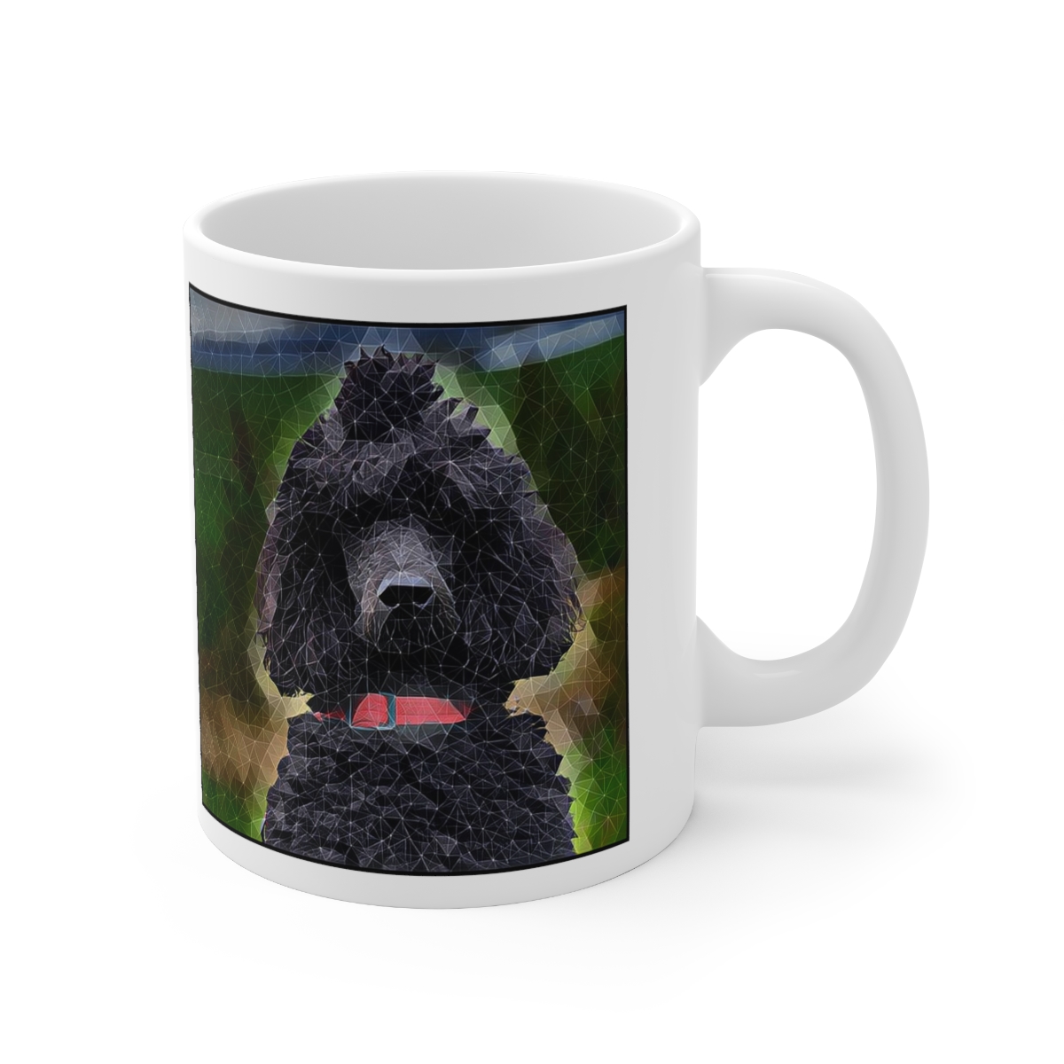 Keep cozy and warm with a nice cuppa, featuring the beloved Poodle Standard dog breed stylized in our Coloromo Rock Candy art on a ceramic mug. Lead and BPA-free, these durable mugs are also microwave & dishwasher-safe. Made of white, resilient ceramic in an 11-ounce size, this is the perfect gift for coffee, tea, and hot chocolate lovers.