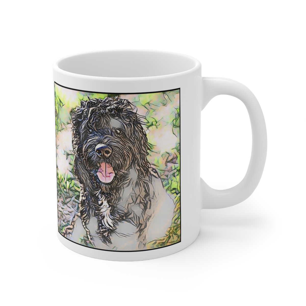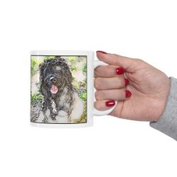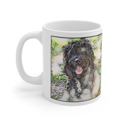 Keep cozy and warm with a nice cuppa, featuring the beloved Portuguese Water Dog dog breed stylized in our Coloromo Penciled In art on a ceramic mug. Lead and BPA-free, these durable mugs are also microwave & dishwasher-safe. Made of white, resilient ceramic in an 11-ounce size, this is the perfect gift for coffee, tea, and hot chocolate lovers.
