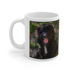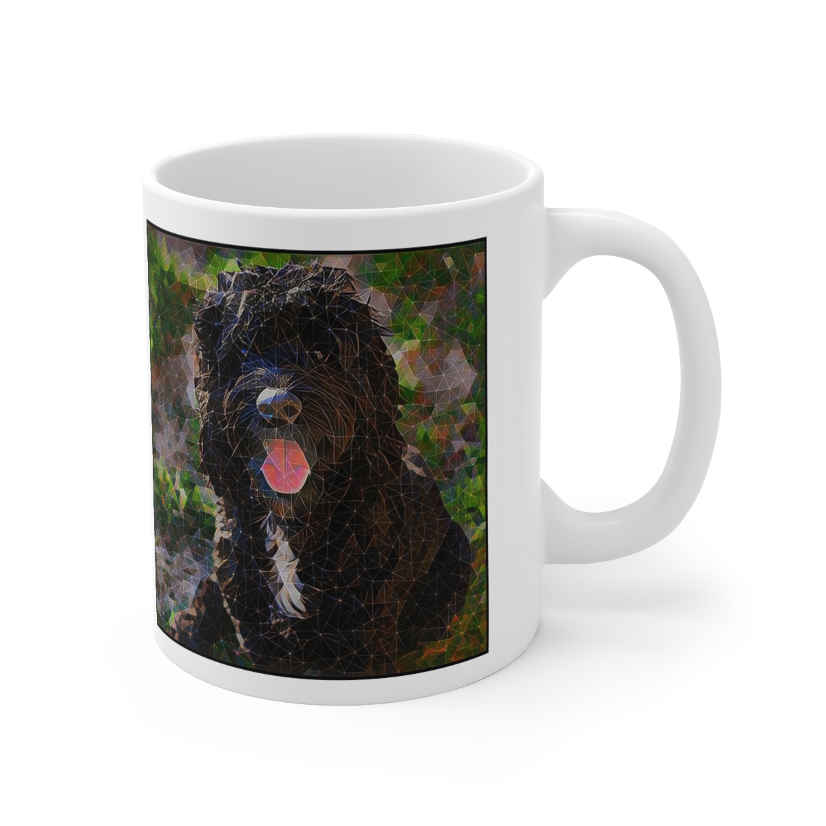 Keep cozy and warm with a nice cuppa, featuring the beloved Portuguese Water Dog dog breed stylized in our Coloromo Rock Candy art on a ceramic mug. Lead and BPA-free, these durable mugs are also microwave & dishwasher-safe. Made of white, resilient ceramic in an 11-ounce size, this is the perfect gift for coffee, tea, and hot chocolate lovers.
