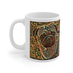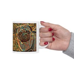 Keep cozy and warm with a nice cuppa, featuring the beloved Pug dog breed stylized in our Coloromo Cool Cubist art on a ceramic mug. Lead and BPA-free, these durable mugs are also microwave & dishwasher-safe. Made of white, resilient ceramic in an 11-ounce size, this is the perfect gift for coffee, tea, and hot chocolate lovers.
