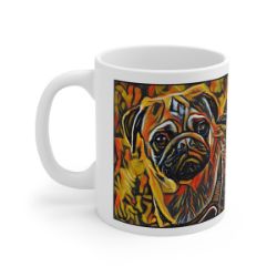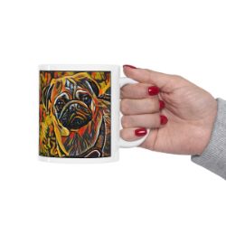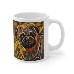 Keep cozy and warm with a nice cuppa, featuring the beloved Pug dog breed stylized in our Coloromo Graffiti Haus art on a ceramic mug. Lead and BPA-free, these durable mugs are also microwave & dishwasher-safe. Made of white, resilient ceramic in an 11-ounce size, this is the perfect gift for coffee, tea, and hot chocolate lovers.