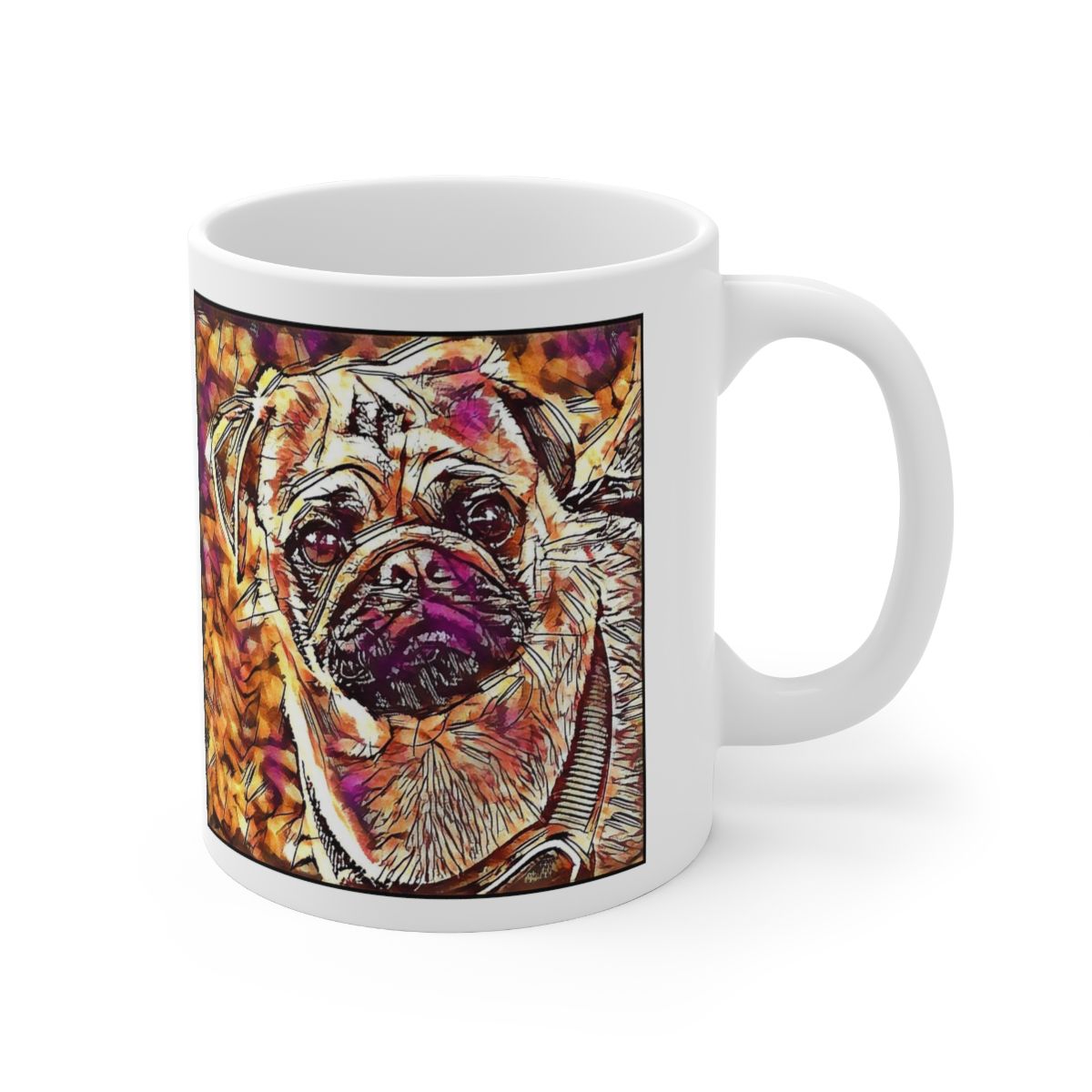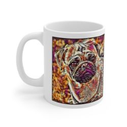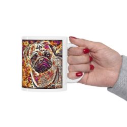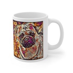 Keep cozy and warm with a nice cuppa, featuring the beloved Pug dog breed stylized in our Coloromo Hipster art on a ceramic mug. Lead and BPA-free, these durable mugs are also microwave & dishwasher-safe. Made of white, resilient ceramic in an 11-ounce size, this is the perfect gift for coffee, tea, and hot chocolate lovers.