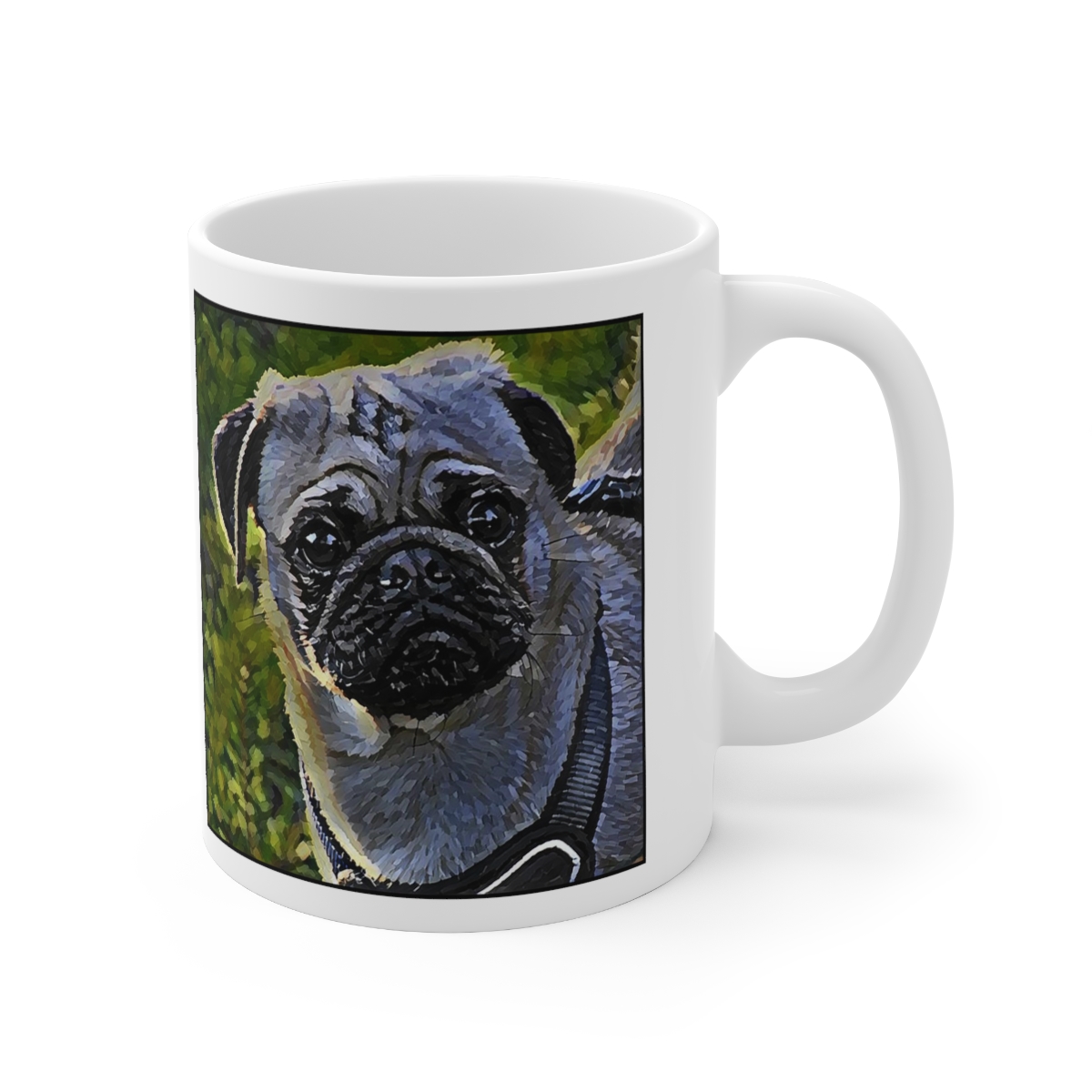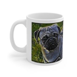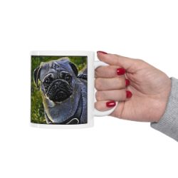 Keep cozy and warm with a nice cuppa, featuring the beloved Pug dog breed stylized in our Coloromo Lord Lil Bit art on a ceramic mug. Lead and BPA-free, these durable mugs are also microwave & dishwasher-safe. Made of white, resilient ceramic in an 11-ounce size, this is the perfect gift for coffee, tea, and hot chocolate lovers.