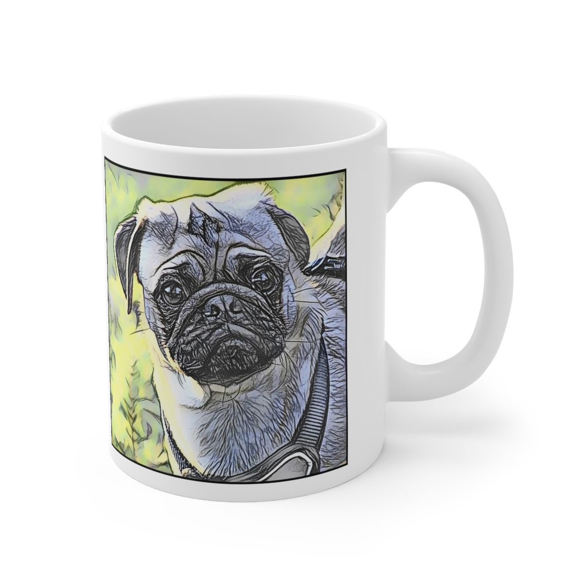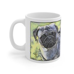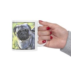 Keep cozy and warm with a nice cuppa, featuring the beloved Pug dog breed stylized in our Coloromo Penciled In art on a ceramic mug. Lead and BPA-free, these durable mugs are also microwave & dishwasher-safe. Made of white, resilient ceramic in an 11-ounce size, this is the perfect gift for coffee, tea, and hot chocolate lovers.