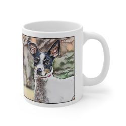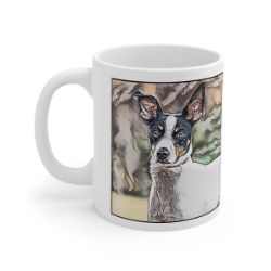 Keep cozy and warm with a nice cuppa, featuring the beloved Rat Terrier dog breed stylized in our Coloromo Penciled In art on a ceramic mug. Lead and BPA-free, these durable mugs are also microwave & dishwasher-safe. Made of white, resilient ceramic in an 11-ounce size, this is the perfect gift for coffee, tea, and hot chocolate lovers.