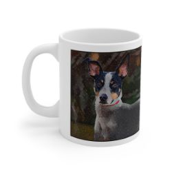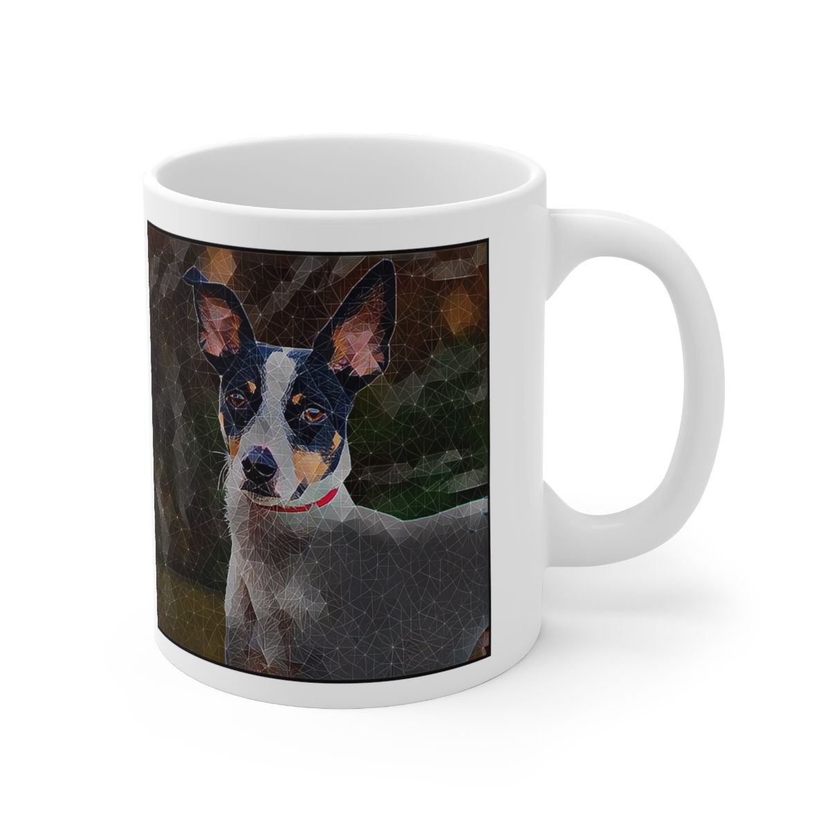 Keep cozy and warm with a nice cuppa, featuring the beloved Rat Terrier dog breed stylized in our Coloromo Rock Candy art on a ceramic mug. Lead and BPA-free, these durable mugs are also microwave & dishwasher-safe. Made of white, resilient ceramic in an 11-ounce size, this is the perfect gift for coffee, tea, and hot chocolate lovers.