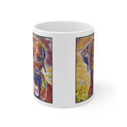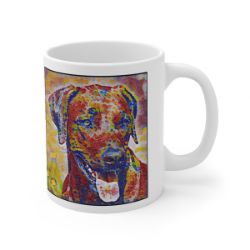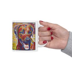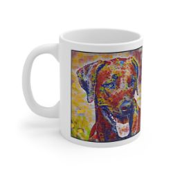 Keep cozy and warm with a nice cuppa, featuring the beloved Rhodesian Ridgeback dog breed stylized in our Coloromo Party Confetti art on a ceramic mug. Lead and BPA-free, these durable mugs are also microwave & dishwasher-safe. Made of white, resilient ceramic in an 11-ounce size, this is the perfect gift for coffee, tea, and hot chocolate lovers.