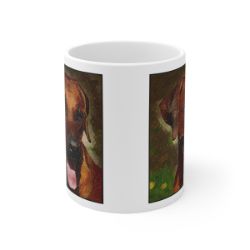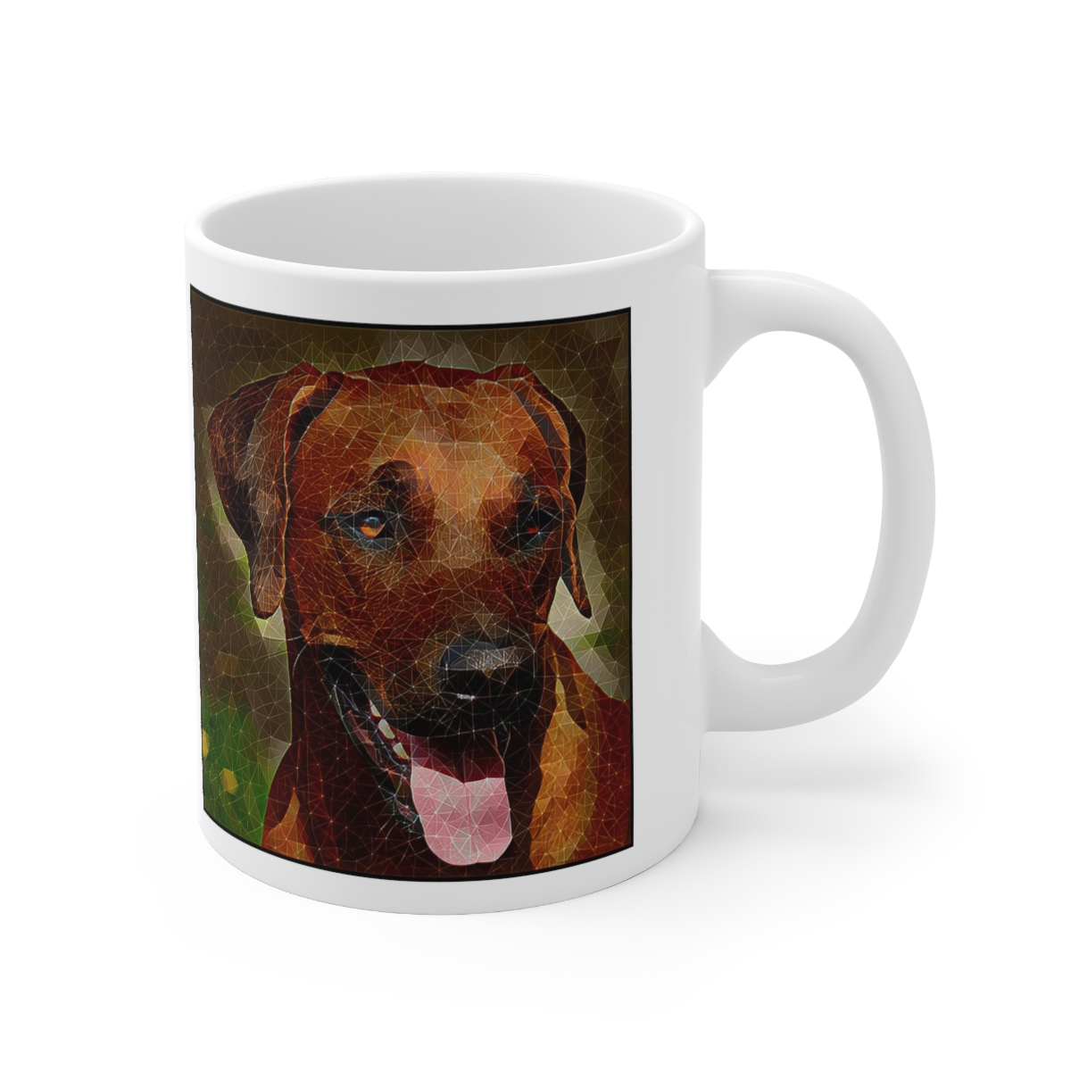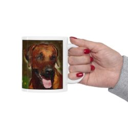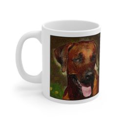 Keep cozy and warm with a nice cuppa, featuring the beloved Rhodesian Ridgeback dog breed stylized in our Coloromo Rock Candy art on a ceramic mug. Lead and BPA-free, these durable mugs are also microwave & dishwasher-safe. Made of white, resilient ceramic in an 11-ounce size, this is the perfect gift for coffee, tea, and hot chocolate lovers.
