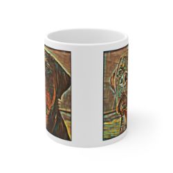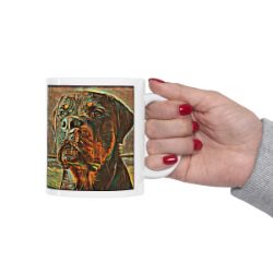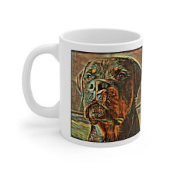 Keep cozy and warm with a nice cuppa, featuring the beloved Rottweiler dog breed stylized in our Coloromo Cool Cubist art on a ceramic mug. Lead and BPA-free, these durable mugs are also microwave & dishwasher-safe. Made of white, resilient ceramic in an 11-ounce size, this is the perfect gift for coffee, tea, and hot chocolate lovers.