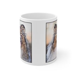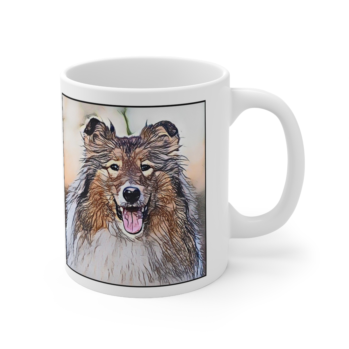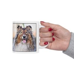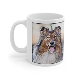 Keep cozy and warm with a nice cuppa, featuring the beloved Rough Collie dog breed stylized in our Coloromo Penciled In art on a ceramic mug. Lead and BPA-free, these durable mugs are also microwave & dishwasher-safe. Made of white, resilient ceramic in an 11-ounce size, this is the perfect gift for coffee, tea, and hot chocolate lovers.