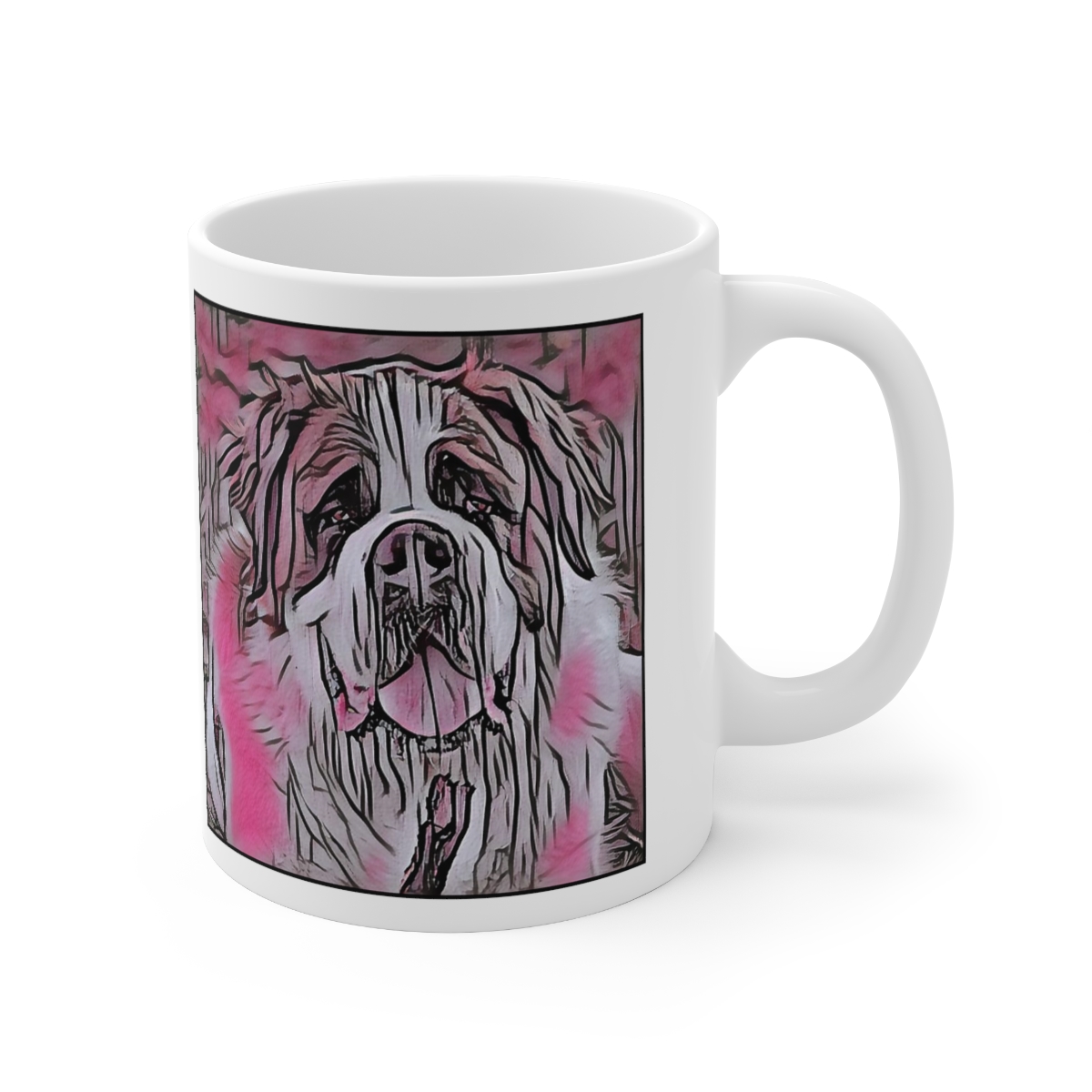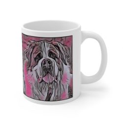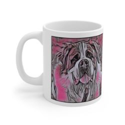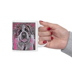 Keep cozy and warm with a nice cuppa, featuring the beloved Saint Bernard dog breed stylized in our Coloromo Comic Pink art on a ceramic mug. Lead and BPA-free, these durable mugs are also microwave & dishwasher-safe. Made of white, resilient ceramic in an 11-ounce size, this is the perfect gift for coffee, tea, and hot chocolate lovers.