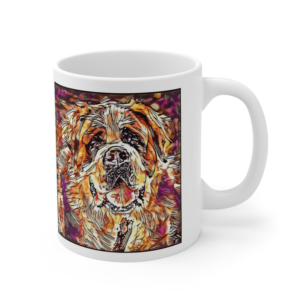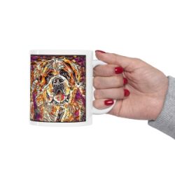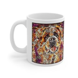 Keep cozy and warm with a nice cuppa, featuring the beloved Saint Bernard dog breed stylized in our Coloromo Hipster art on a ceramic mug. Lead and BPA-free, these durable mugs are also microwave & dishwasher-safe. Made of white, resilient ceramic in an 11-ounce size, this is the perfect gift for coffee, tea, and hot chocolate lovers.