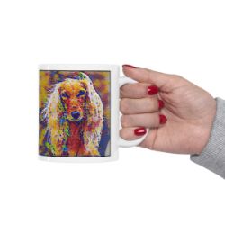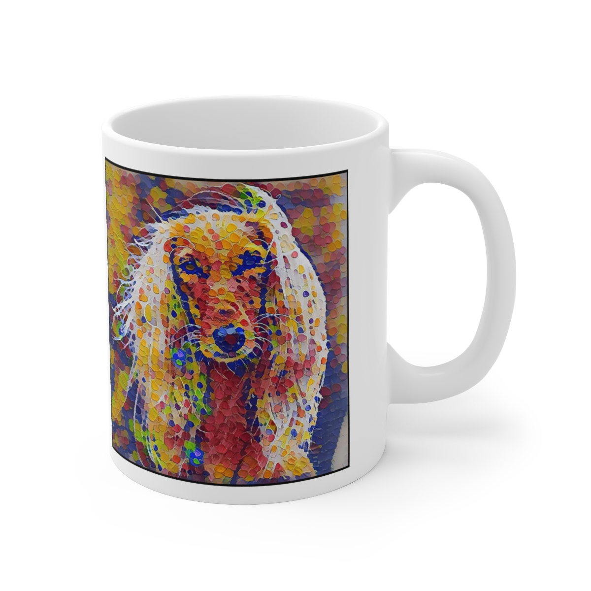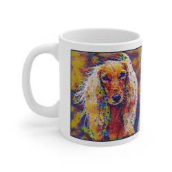 Keep cozy and warm with a nice cuppa, featuring the beloved Saluki dog breed stylized in our Coloromo Party Confetti art on a ceramic mug. Lead and BPA-free, these durable mugs are also microwave & dishwasher-safe. Made of white, resilient ceramic in an 11-ounce size, this is the perfect gift for coffee, tea, and hot chocolate lovers.