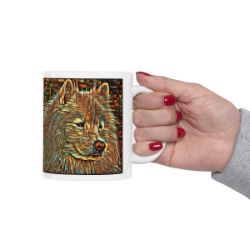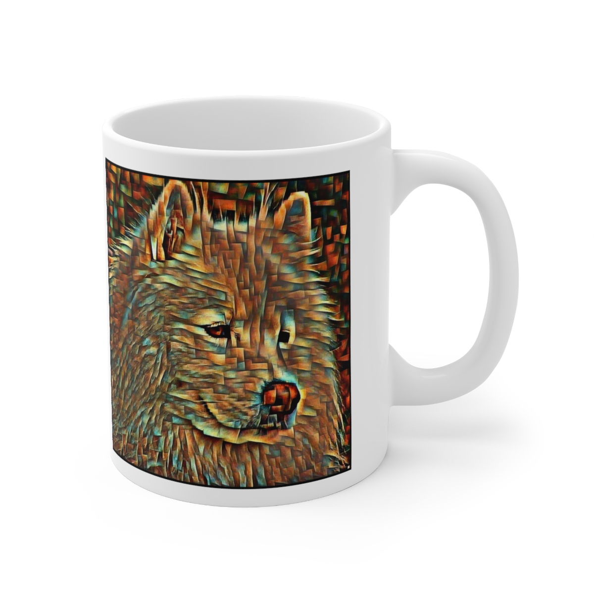 Keep cozy and warm with a nice cuppa, featuring the beloved Samoyed dog breed stylized in our Coloromo Cool Cubist art on a ceramic mug. Lead and BPA-free, these durable mugs are also microwave & dishwasher-safe. Made of white, resilient ceramic in an 11-ounce size, this is the perfect gift for coffee, tea, and hot chocolate lovers.