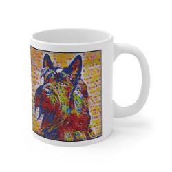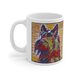 Keep cozy and warm with a nice cuppa, featuring the beloved Scottish Terrier dog breed stylized in our Coloromo Party Confetti art on a ceramic mug. Lead and BPA-free, these durable mugs are also microwave & dishwasher-safe. Made of white, resilient ceramic in an 11-ounce size, this is the perfect gift for coffee, tea, and hot chocolate lovers.