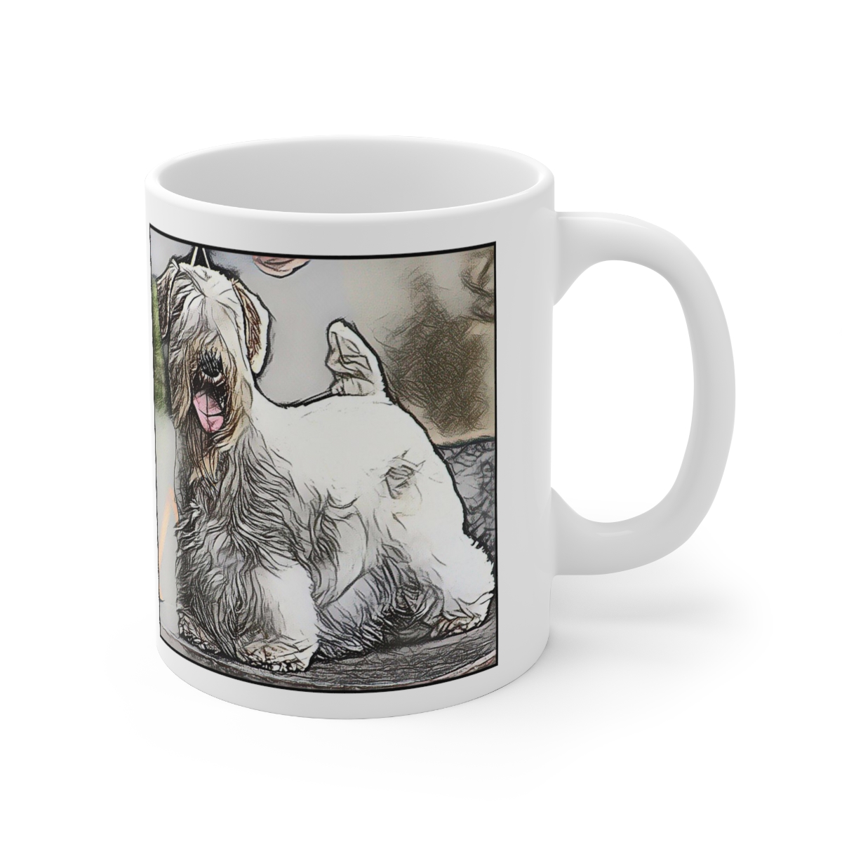 Keep cozy and warm with a nice cuppa, featuring the beloved Sealyham Terrier dog breed stylized in our Coloromo Penciled In art on a ceramic mug. Lead and BPA-free, these durable mugs are also microwave & dishwasher-safe. Made of white, resilient ceramic in an 11-ounce size, this is the perfect gift for coffee, tea, and hot chocolate lovers.