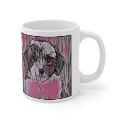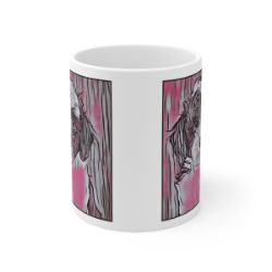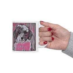 Keep cozy and warm with a nice cuppa, featuring the beloved Sheepadoodle dog breed stylized in our Coloromo Comic Pink art on a ceramic mug. Lead and BPA-free, these durable mugs are also microwave & dishwasher-safe. Made of white, resilient ceramic in an 11-ounce size, this is the perfect gift for coffee, tea, and hot chocolate lovers.