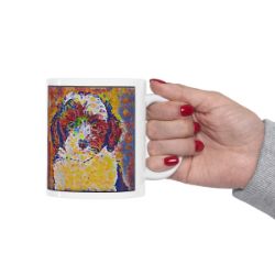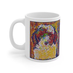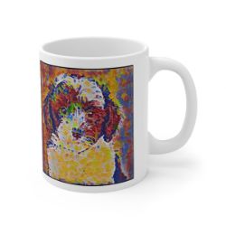Keep cozy and warm with a nice cuppa, featuring the beloved Sheepadoodle dog breed stylized in our Coloromo Party Confetti art on a ceramic mug. Lead and BPA-free, these durable mugs are also microwave & dishwasher-safe. Made of white, resilient ceramic in an 11-ounce size, this is the perfect gift for coffee, tea, and hot chocolate lovers.