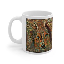 Keep cozy and warm with a nice cuppa, featuring the beloved Shetland Sheepdog dog breed stylized in our Coloromo Cool Cubist art on a ceramic mug. Lead and BPA-free, these durable mugs are also microwave & dishwasher-safe. Made of white, resilient ceramic in an 11-ounce size, this is the perfect gift for coffee, tea, and hot chocolate lovers.