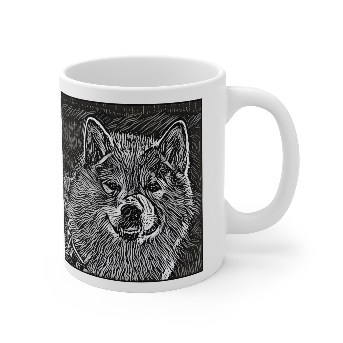 Keep cozy and warm with a nice cuppa, featuring the beloved Shiba Inu dog breed stylized in our Coloromo Licorice Lines art on a ceramic mug. Lead and BPA-free, these durable mugs are also microwave & dishwasher-safe. Made of white, resilient ceramic in an 11-ounce size, this is the perfect gift for coffee, tea, and hot chocolate lovers.