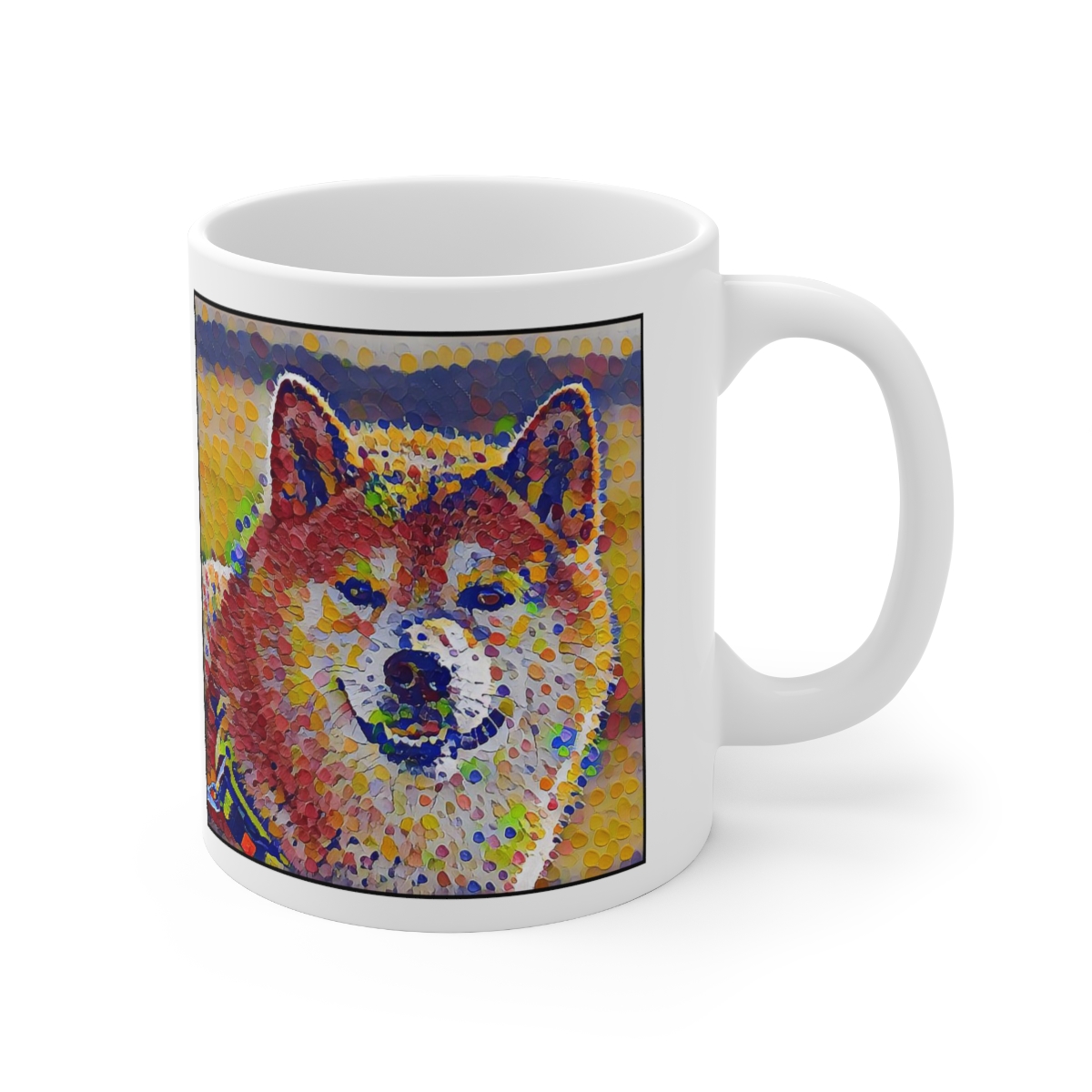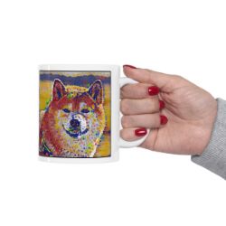 Keep cozy and warm with a nice cuppa, featuring the beloved Shiba Inu dog breed stylized in our Coloromo Party Confetti art on a ceramic mug. Lead and BPA-free, these durable mugs are also microwave & dishwasher-safe. Made of white, resilient ceramic in an 11-ounce size, this is the perfect gift for coffee, tea, and hot chocolate lovers.