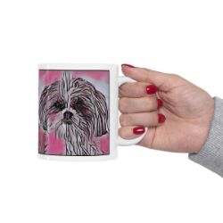 Keep cozy and warm with a nice cuppa, featuring the beloved Shih Tzu dog breed stylized in our Coloromo Comic Pink art on a ceramic mug. Lead and BPA-free, these durable mugs are also microwave & dishwasher-safe. Made of white, resilient ceramic in an 11-ounce size, this is the perfect gift for coffee, tea, and hot chocolate lovers.
