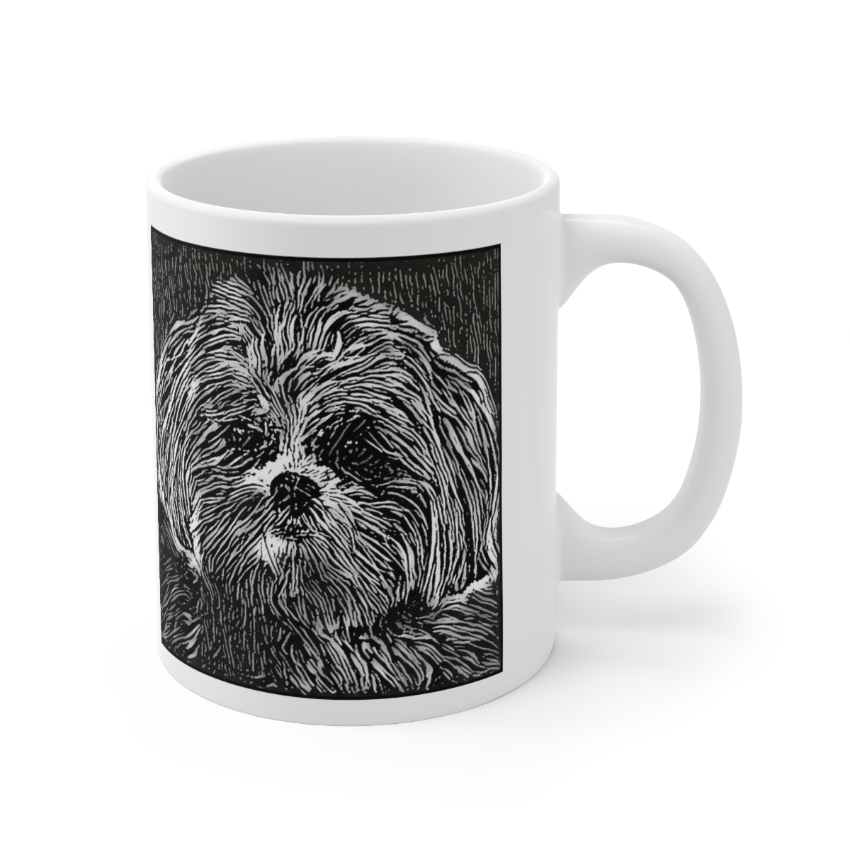 Keep cozy and warm with a nice cuppa, featuring the beloved Shih Tzu dog breed stylized in our Coloromo Licorice Lines art on a ceramic mug. Lead and BPA-free, these durable mugs are also microwave & dishwasher-safe. Made of white, resilient ceramic in an 11-ounce size, this is the perfect gift for coffee, tea, and hot chocolate lovers.