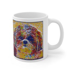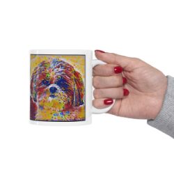 Keep cozy and warm with a nice cuppa, featuring the beloved Shih Tzu dog breed stylized in our Coloromo Party Confetti art on a ceramic mug. Lead and BPA-free, these durable mugs are also microwave & dishwasher-safe. Made of white, resilient ceramic in an 11-ounce size, this is the perfect gift for coffee, tea, and hot chocolate lovers.