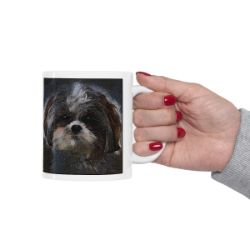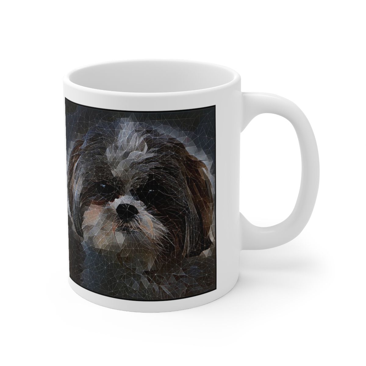 Keep cozy and warm with a nice cuppa, featuring the beloved Shih Tzu dog breed stylized in our Coloromo Rock Candy art on a ceramic mug. Lead and BPA-free, these durable mugs are also microwave & dishwasher-safe. Made of white, resilient ceramic in an 11-ounce size, this is the perfect gift for coffee, tea, and hot chocolate lovers.