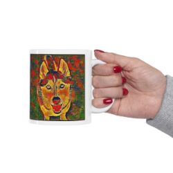 Keep cozy and warm with a nice cuppa, featuring the beloved Siberian Husky dog breed stylized in our Coloromo Garden Veggie art on a ceramic mug. Lead and BPA-free, these durable mugs are also microwave & dishwasher-safe. Made of white, resilient ceramic in an 11-ounce size, this is the perfect gift for coffee, tea, and hot chocolate lovers.