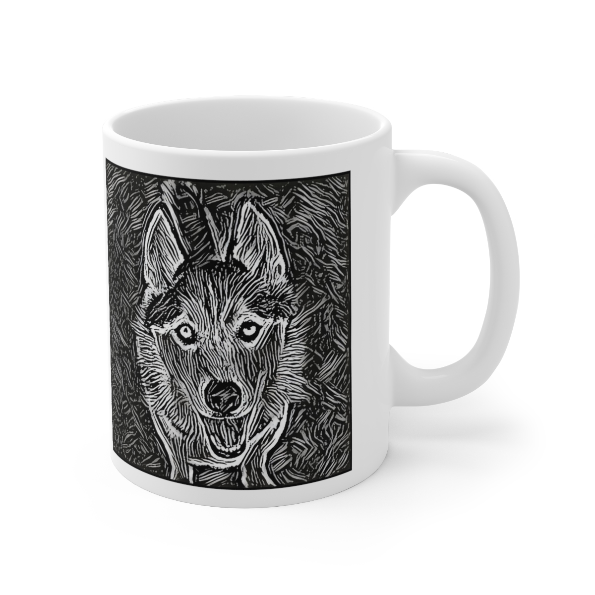 Keep cozy and warm with a nice cuppa, featuring the beloved Siberian Husky dog breed stylized in our Coloromo Licorice Lines art on a ceramic mug. Lead and BPA-free, these durable mugs are also microwave & dishwasher-safe. Made of white, resilient ceramic in an 11-ounce size, this is the perfect gift for coffee, tea, and hot chocolate lovers.