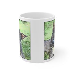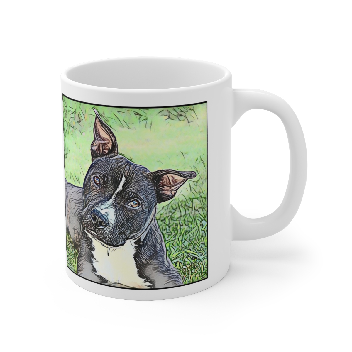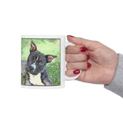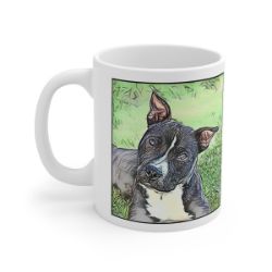 Keep cozy and warm with a nice cuppa, featuring the beloved Staffordshire Bull Terrier dog breed stylized in our Coloromo Penciled In art on a ceramic mug. Lead and BPA-free, these durable mugs are also microwave & dishwasher-safe. Made of white, resilient ceramic in an 11-ounce size, this is the perfect gift for coffee, tea, and hot chocolate lovers.