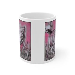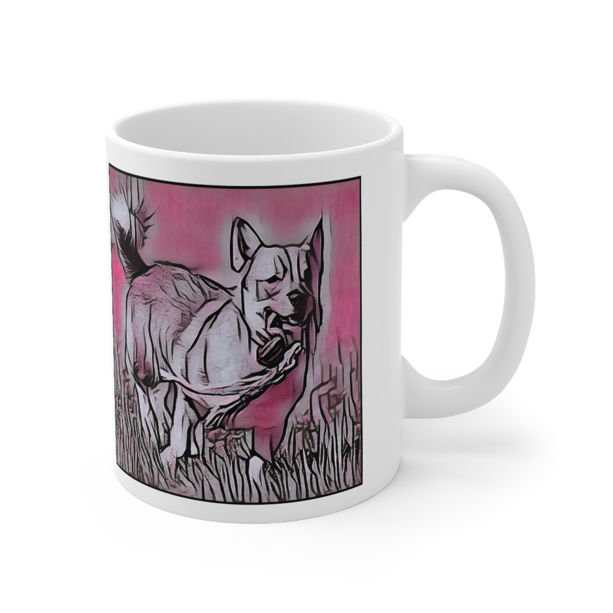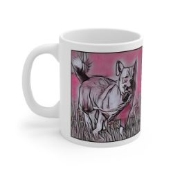 Keep cozy and warm with a nice cuppa, featuring the beloved Swedish Vallhund dog breed stylized in our Coloromo Comic Pink art on a ceramic mug. Lead and BPA-free, these durable mugs are also microwave & dishwasher-safe. Made of white, resilient ceramic in an 11-ounce size, this is the perfect gift for coffee, tea, and hot chocolate lovers.