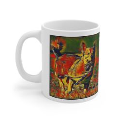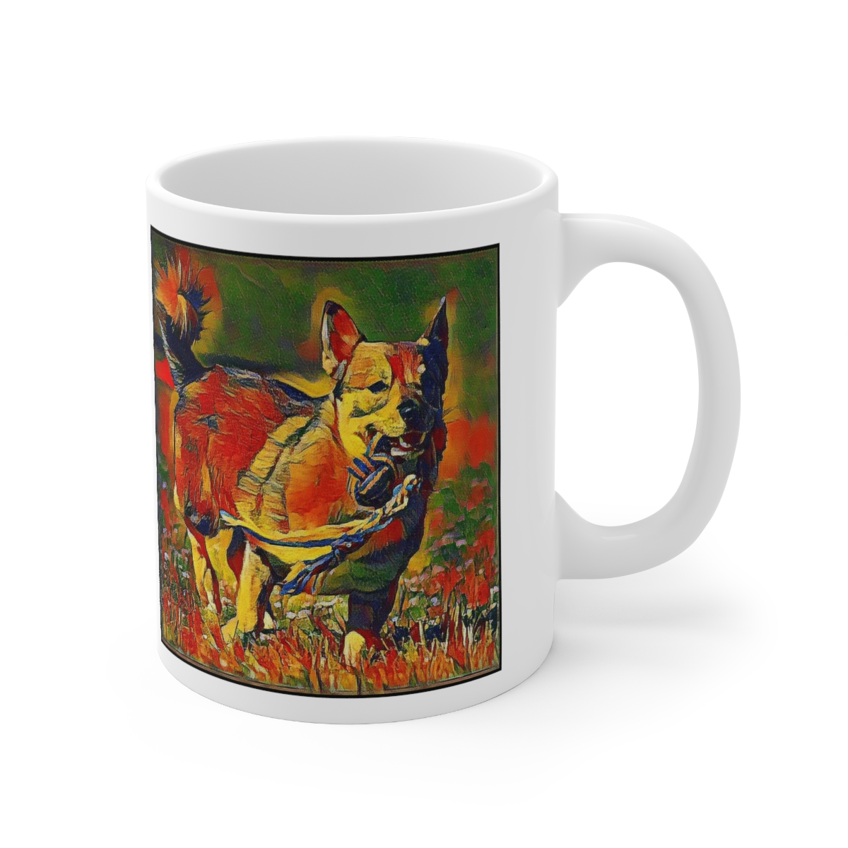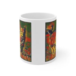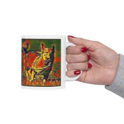 Keep cozy and warm with a nice cuppa, featuring the beloved Swedish Vallhund dog breed stylized in our Coloromo Garden Veggie art on a ceramic mug. Lead and BPA-free, these durable mugs are also microwave & dishwasher-safe. Made of white, resilient ceramic in an 11-ounce size, this is the perfect gift for coffee, tea, and hot chocolate lovers.