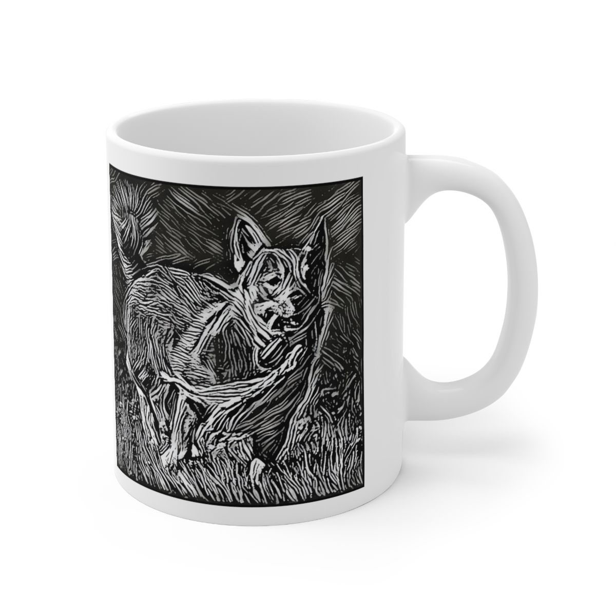 Keep cozy and warm with a nice cuppa, featuring the beloved Swedish Vallhund dog breed stylized in our Coloromo Licorice Lines art on a ceramic mug. Lead and BPA-free, these durable mugs are also microwave & dishwasher-safe. Made of white, resilient ceramic in an 11-ounce size, this is the perfect gift for coffee, tea, and hot chocolate lovers.
