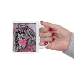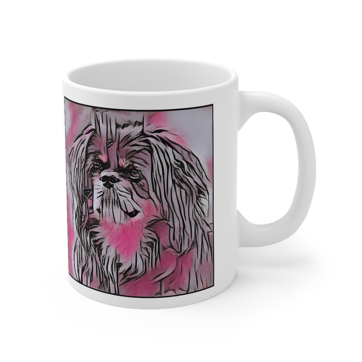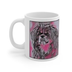 Keep cozy and warm with a nice cuppa, featuring the beloved Tibetan Spaniel dog breed stylized in our Coloromo Comic Pink art on a ceramic mug. Lead and BPA-free, these durable mugs are also microwave & dishwasher-safe. Made of white, resilient ceramic in an 11-ounce size, this is the perfect gift for coffee, tea, and hot chocolate lovers.