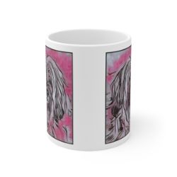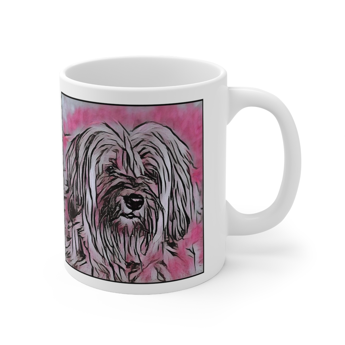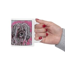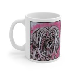 Keep cozy and warm with a nice cuppa, featuring the beloved Tibetan Terrier dog breed stylized in our Coloromo Comic Pink art on a ceramic mug. Lead and BPA-free, these durable mugs are also microwave & dishwasher-safe. Made of white, resilient ceramic in an 11-ounce size, this is the perfect gift for coffee, tea, and hot chocolate lovers.