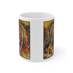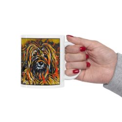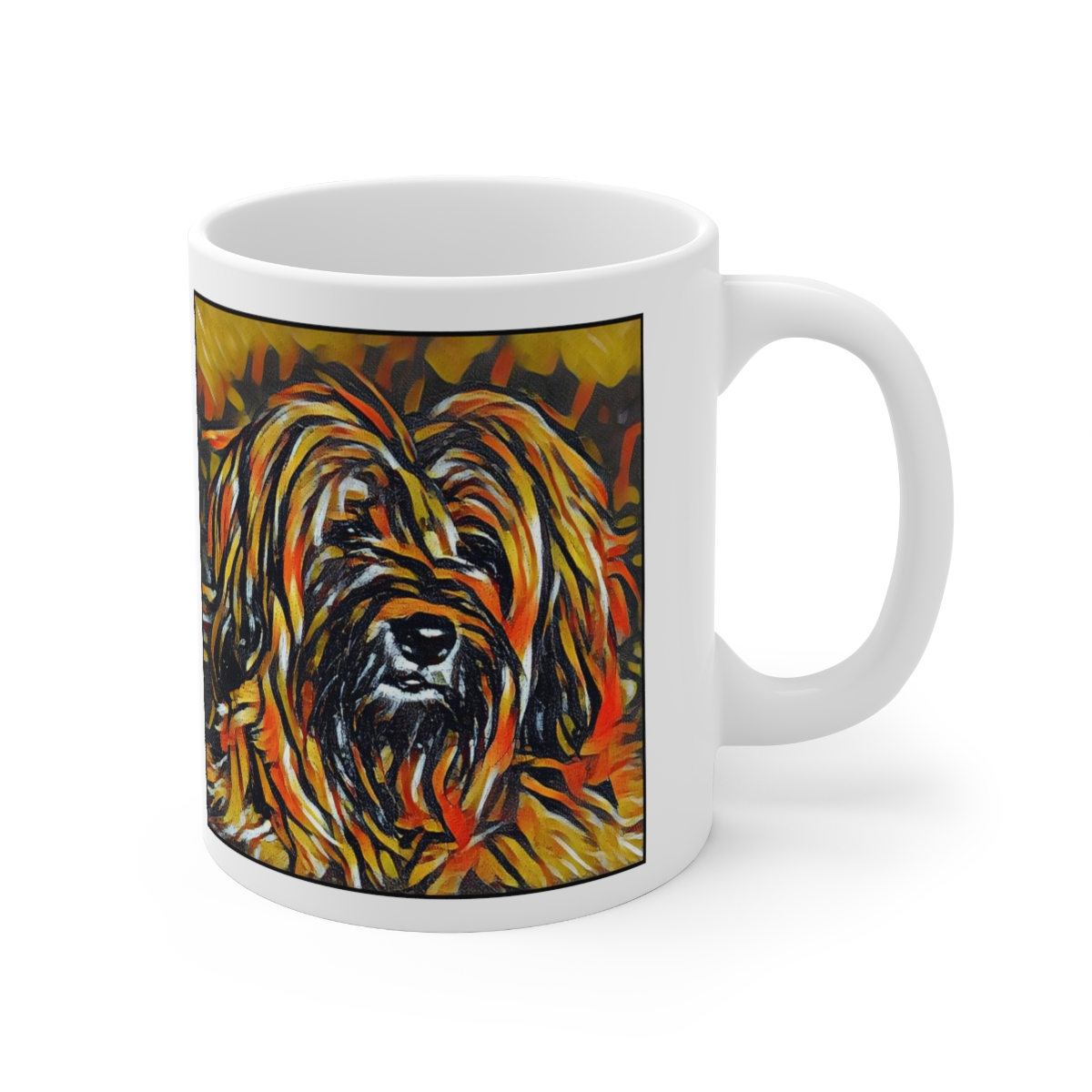Keep cozy and warm with a nice cuppa, featuring the beloved Tibetan Terrier dog breed stylized in our Coloromo Graffiti Haus art on a ceramic mug. Lead and BPA-free, these durable mugs are also microwave & dishwasher-safe. Made of white, resilient ceramic in an 11-ounce size, this is the perfect gift for coffee, tea, and hot chocolate lovers.