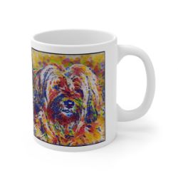 Keep cozy and warm with a nice cuppa, featuring the beloved Tibetan Terrier dog breed stylized in our Coloromo Party Confetti art on a ceramic mug. Lead and BPA-free, these durable mugs are also microwave & dishwasher-safe. Made of white, resilient ceramic in an 11-ounce size, this is the perfect gift for coffee, tea, and hot chocolate lovers.