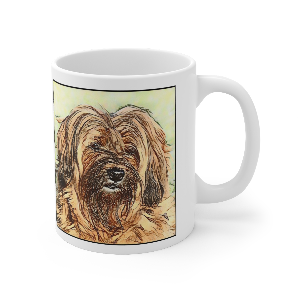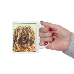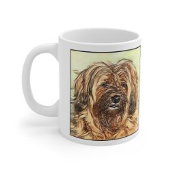 Keep cozy and warm with a nice cuppa, featuring the beloved Tibetan Terrier dog breed stylized in our Coloromo Penciled In art on a ceramic mug. Lead and BPA-free, these durable mugs are also microwave & dishwasher-safe. Made of white, resilient ceramic in an 11-ounce size, this is the perfect gift for coffee, tea, and hot chocolate lovers.