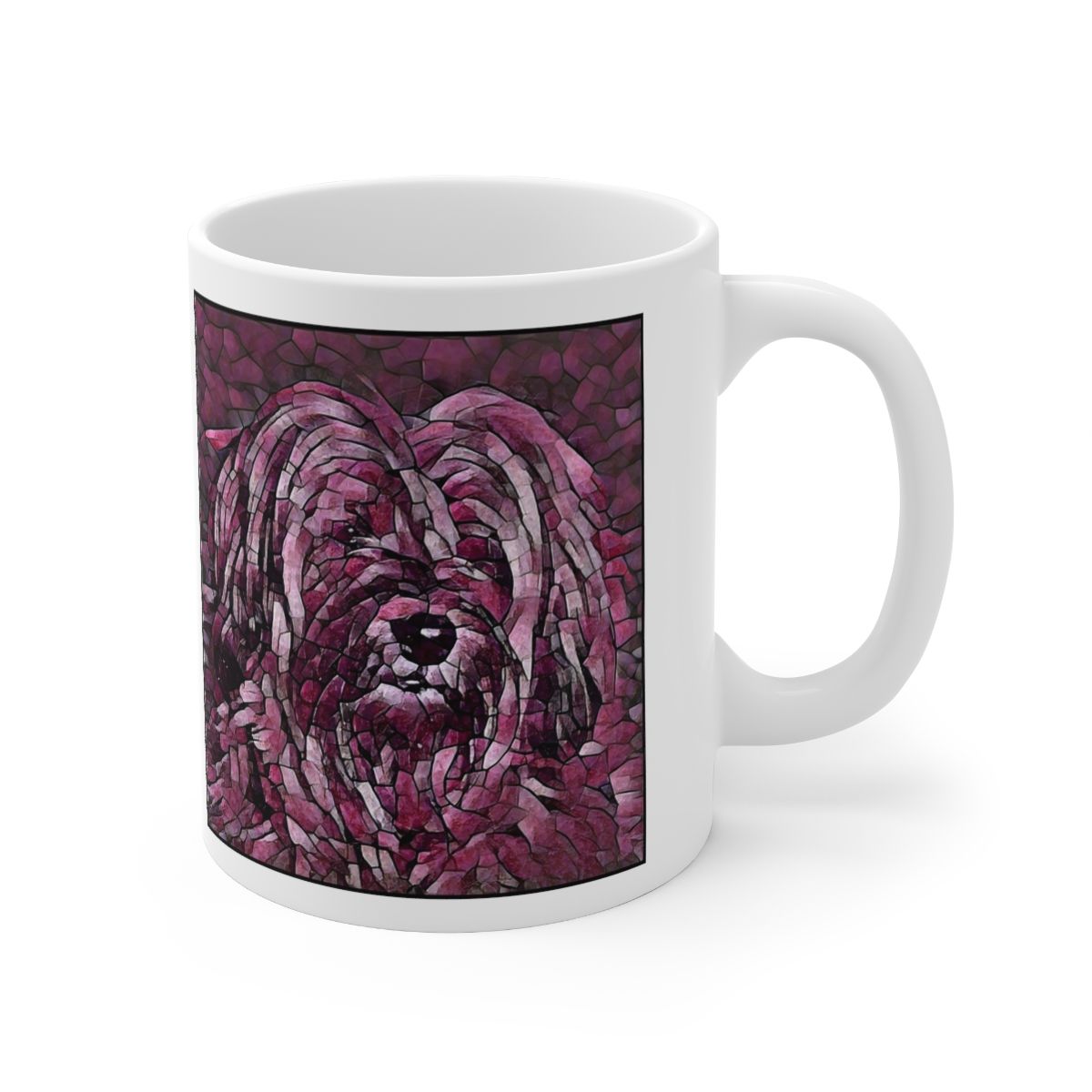 Keep cozy and warm with a nice cuppa, featuring the beloved Tibetan Terrier dog breed stylized in our Coloromo Plump Wine art on a ceramic mug. Lead and BPA-free, these durable mugs are also microwave & dishwasher-safe. Made of white, resilient ceramic in an 11-ounce size, this is the perfect gift for coffee, tea, and hot chocolate lovers.