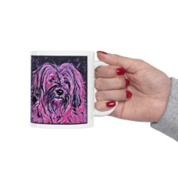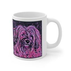 Keep cozy and warm with a nice cuppa, featuring the beloved Tibetan Terrier dog breed stylized in our Coloromo Violet Femmes art on a ceramic mug. Lead and BPA-free, these durable mugs are also microwave & dishwasher-safe. Made of white, resilient ceramic in an 11-ounce size, this is the perfect gift for coffee, tea, and hot chocolate lovers.