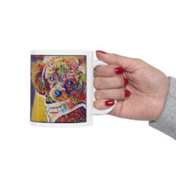 Keep cozy and warm with a nice cuppa, featuring the beloved Toy Poodle dog breed stylized in our Coloromo Party Confetti art on a ceramic mug. Lead and BPA-free, these durable mugs are also microwave & dishwasher-safe. Made of white, resilient ceramic in an 11-ounce size, this is the perfect gift for coffee, tea, and hot chocolate lovers.